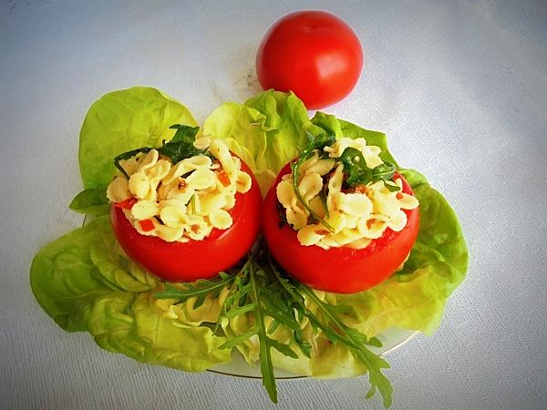 Makaron ugotować w/g przepisu na opakowaniu ma być al dente. Odcedzić przestudzić dodać rukolę i 2 łyżki oliwy. Resztę oliwy rozgrzać na patelni i podsmażyć na niej czosnek, chili i anchois smażyć do momentu aż fileciki się rozpadną. Dodać do makaronu i rukoli, wlać ocet i dokładnie wymieszać.